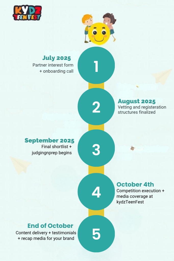 KydzTeenFest is more than an event—it’s a growing movement to restore family values, nurture youth potential, and spark joy and purpose in homes across Nigeria and Africa. We’re calling on mission-aligned brands, organizations, and institutions to join us as partners, not just supporters.